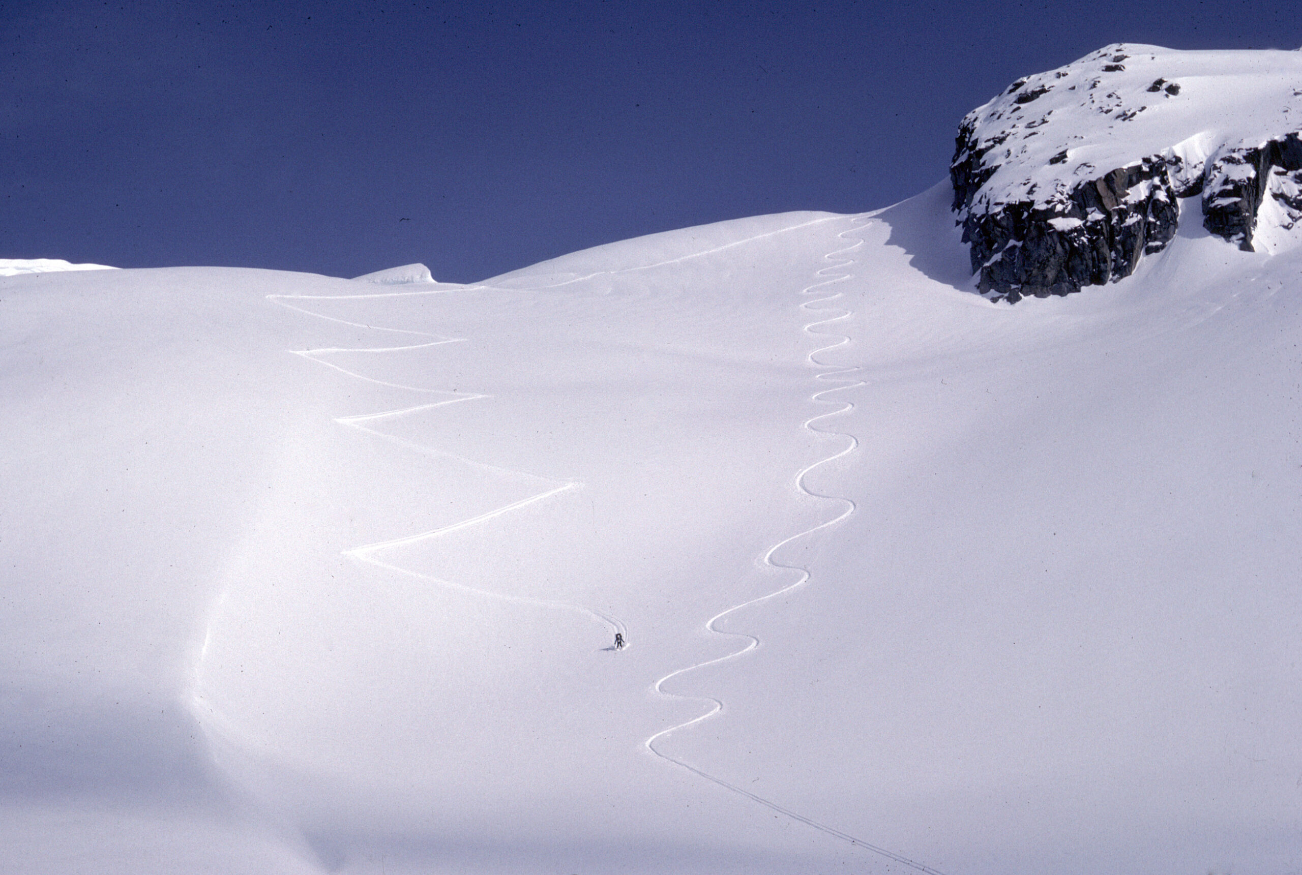 John Clarke’s ski tracks. Photo: John Baldwin.