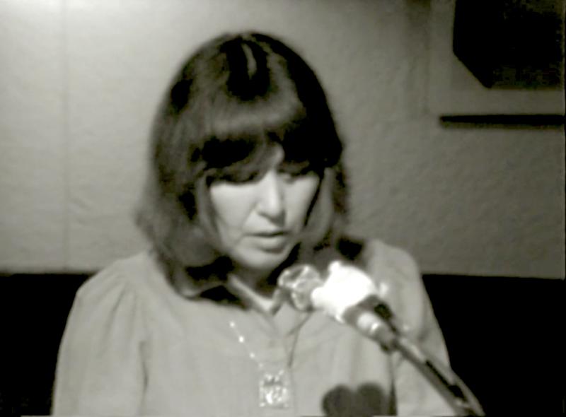 Gladys Maria Hindmarch, from a still while being filmed at a 1975 reading at The Western Front.